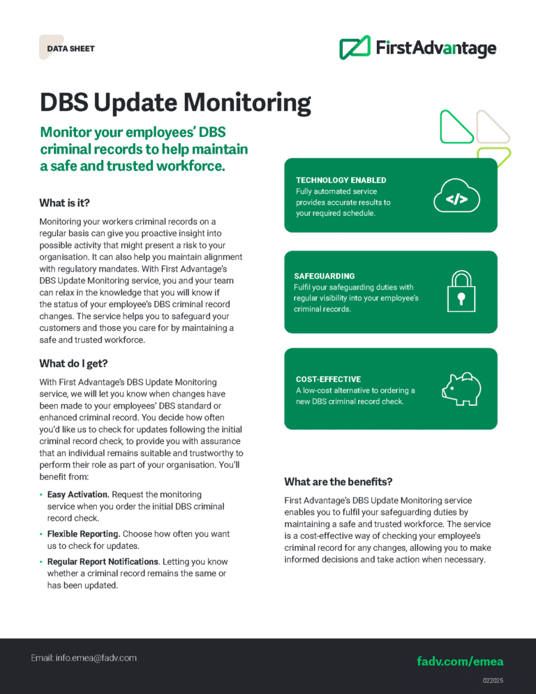 The process when applying to access criminal records can vary significantly, both in the UK and throughout the world. However, whether applicants are working in regulated industries, providing delivery services, or any activities requiring the employer to conduct criminal record checks, First Advantage’s services and teams of specialists help to support employers across the globe in conducting the relevant checks for roles, according to local country requirements.